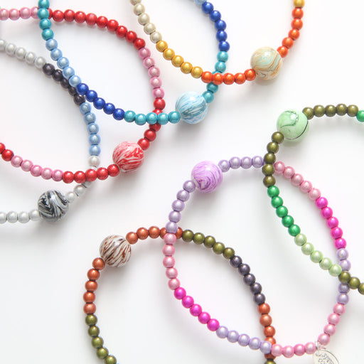 Top Bead Tip: always pick a Super Fine Bead Bracelet for your statement piece as its the largest bead, pick your favourite colour or spectrum then co-ordinate your smaller Ultra fine bracelets to match. But you don't have to alternate bead sizes...why not go for a three Super Fine Bead look that really stands out as a statement look? If you are more sporty or like the more subtle look, three Ultra Fines sit comfortably and more discretely but still give you the 'Wow' factor!