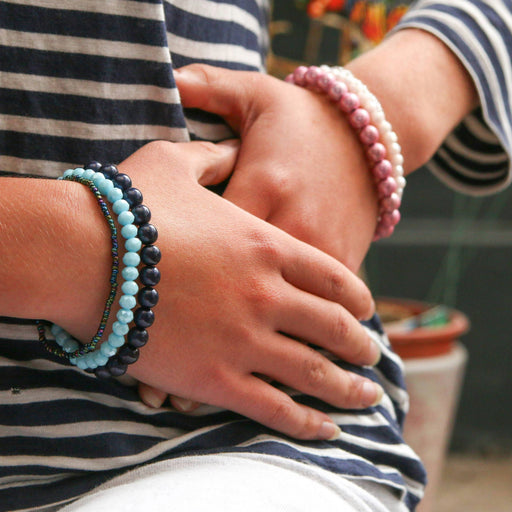 Low stockFine Bead Style! Our much loved Fine 10mm size bead with four beautiful colourways and mother of pearl shell glints to elevate! Each bracelet has c...