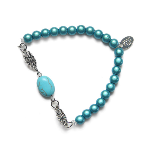 Low stockStatement style! A beautiful 6mm Super Fine Bracelet with Filligree Silver and Turquoise centre-piece. Ease into Autumn with this statement Bracele...