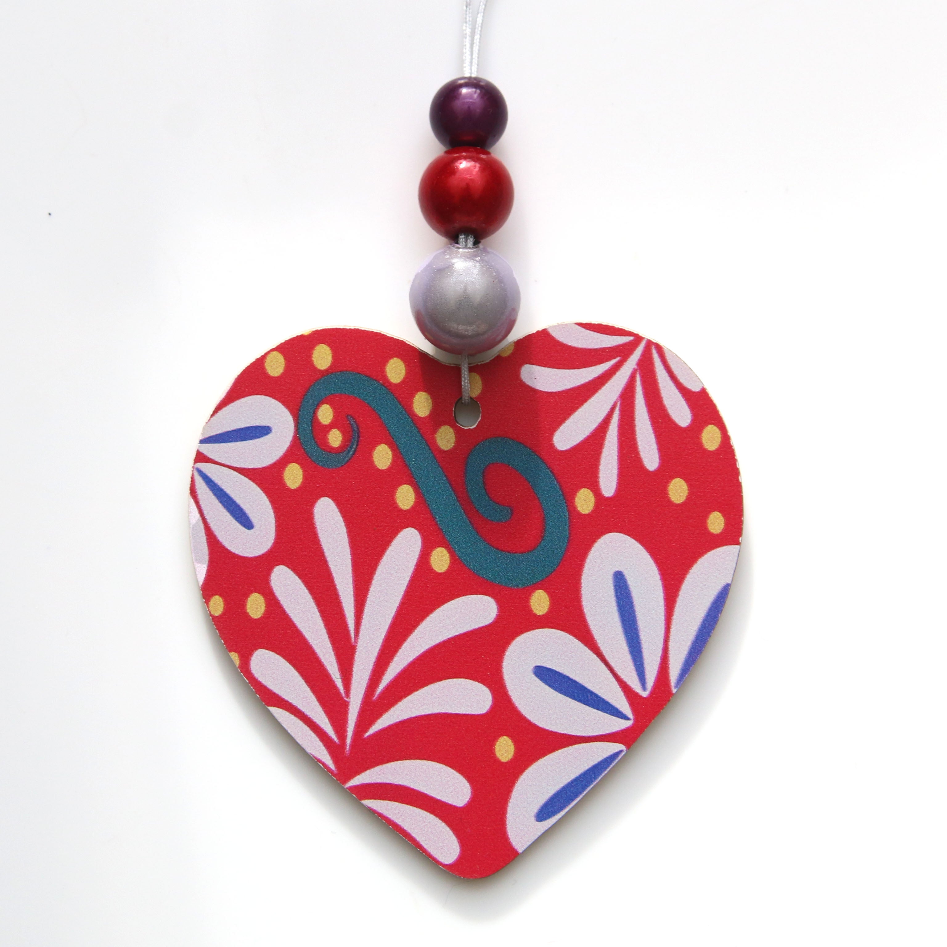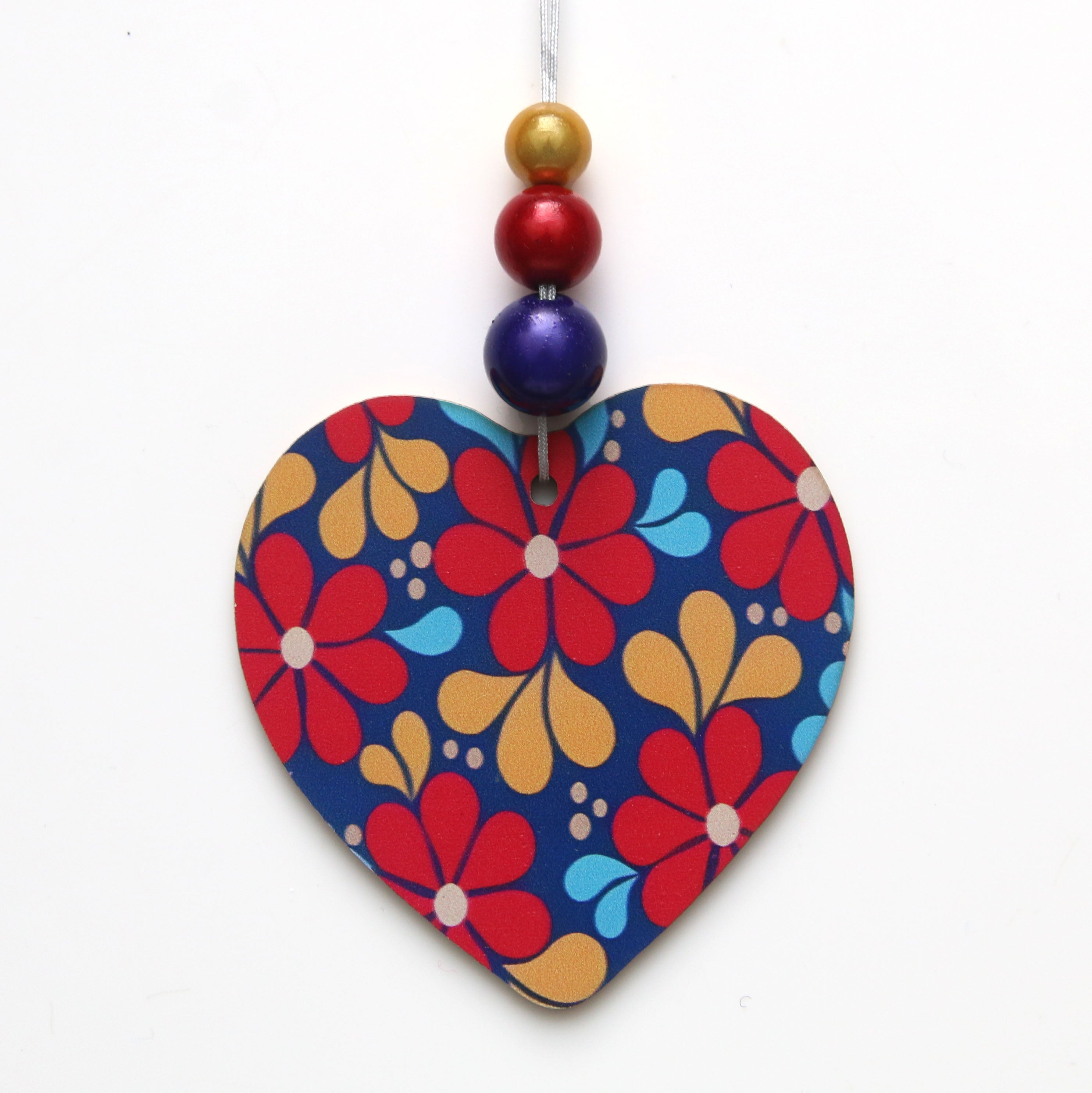 Cute wooden coloured heart decoration, with graduated three Disco Bead drop.  A perfect little touch to any home, car or Valentine's gift.