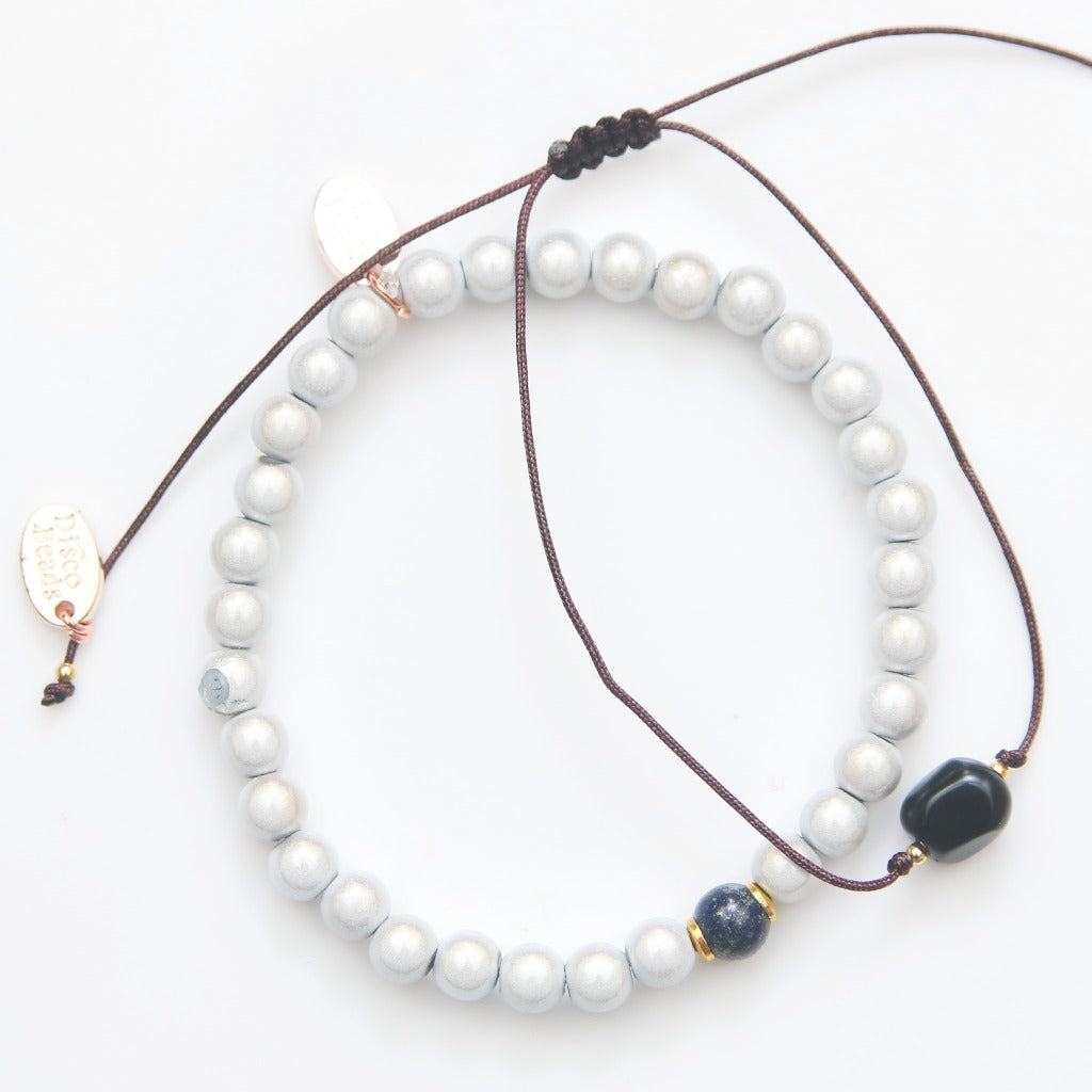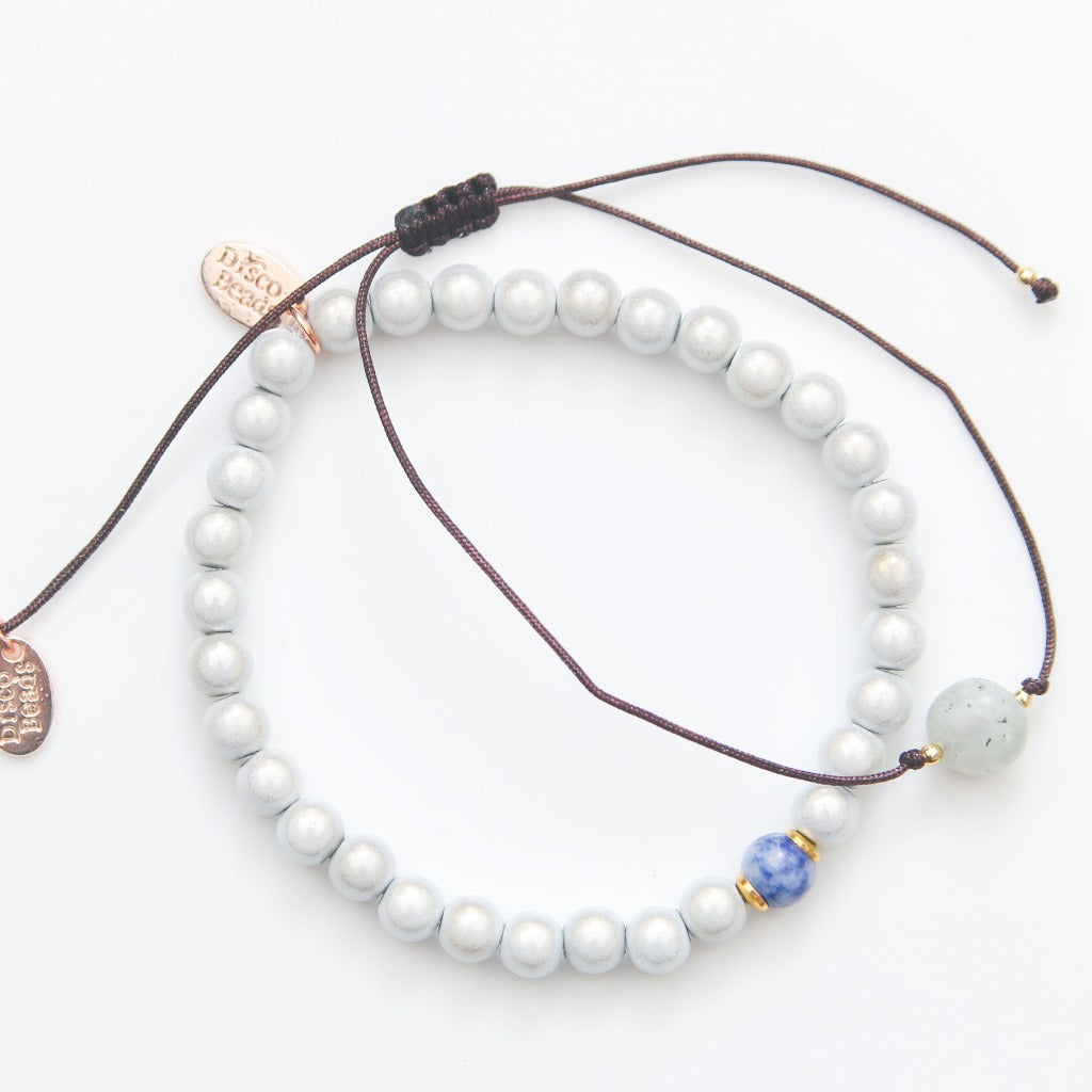 Each elasticated bracelet has been made on super-stretchy strong elastic and is made to comfortably fit wrists up to 16cm. The corded Bracelet will fit any size as it is adjustable. They come complete with an original Disco Beads jewellery tag and in an eco-friendly Disco Beads paper bag; perfect to store them in or use as a gift bag for a friend.